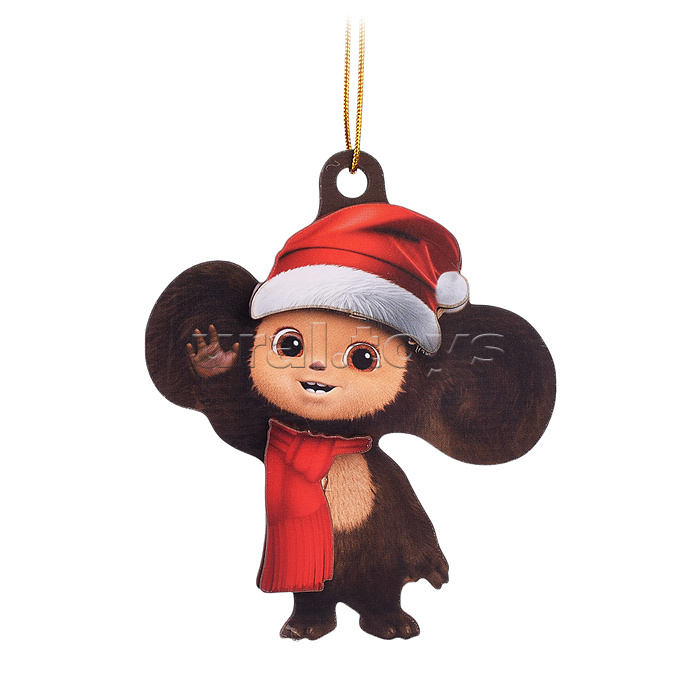 Новогодняя ёлочная подвеска из дерева двухслойная "Чебурашка в шарфике" 9х7,5см