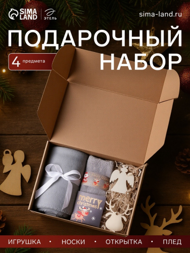 Составляющие набора: Игрушка, Плед, Открытка, Носки