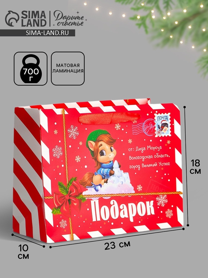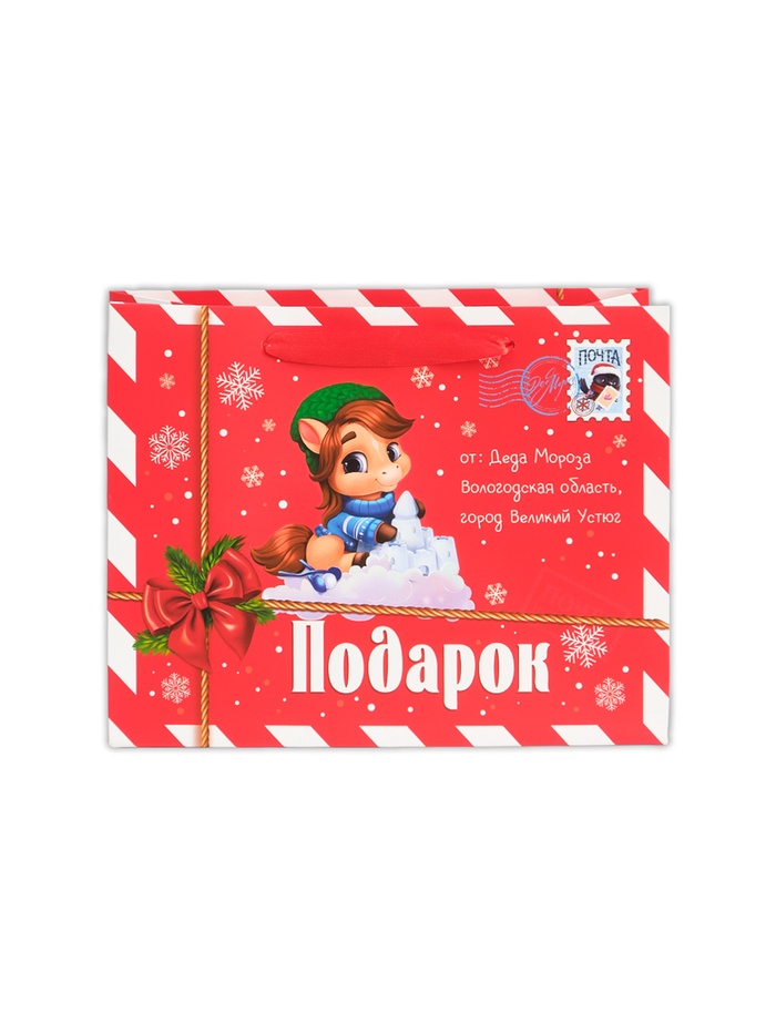 Пакет новогодний ламинированный подарочный «Новый год 2026: Лошадка», MS 23×18×10 см