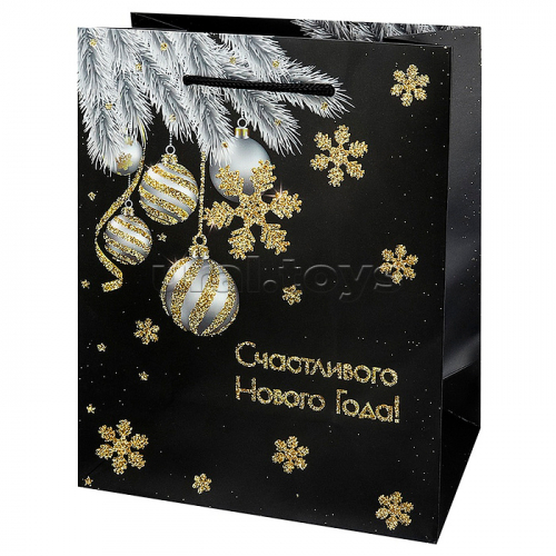 Пакет подарочный 18х23х10 см (M) "Новогодние ветки"