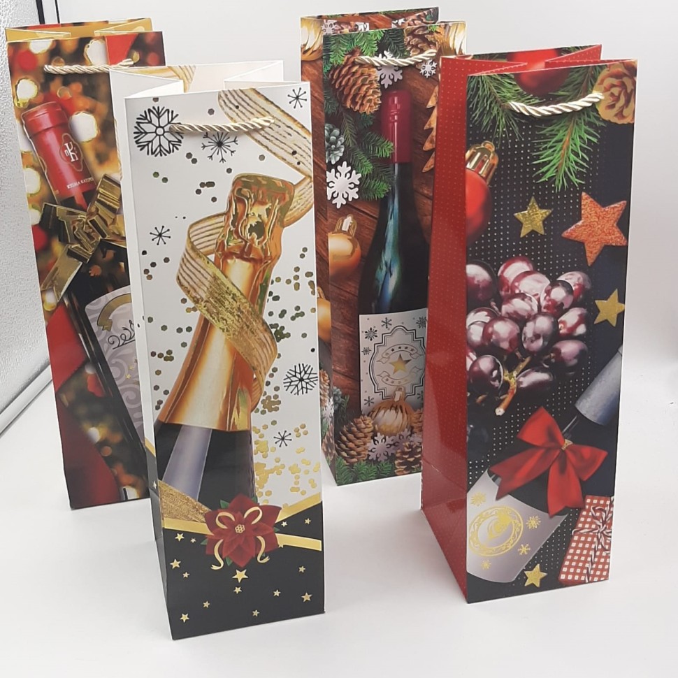 Пакет Подарочный Для бутылки ШАМПАНСКОЕ (11*38*11) (ТВ-9042) (В упаковке 12 штук)