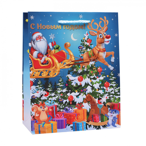 Пакет подарочный глянцевый "Новый год" размер М