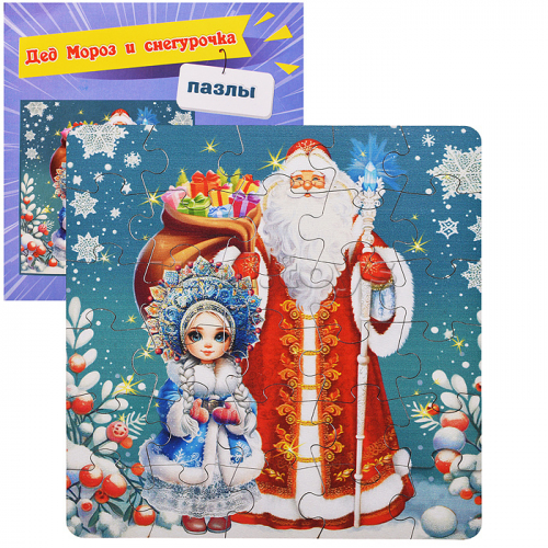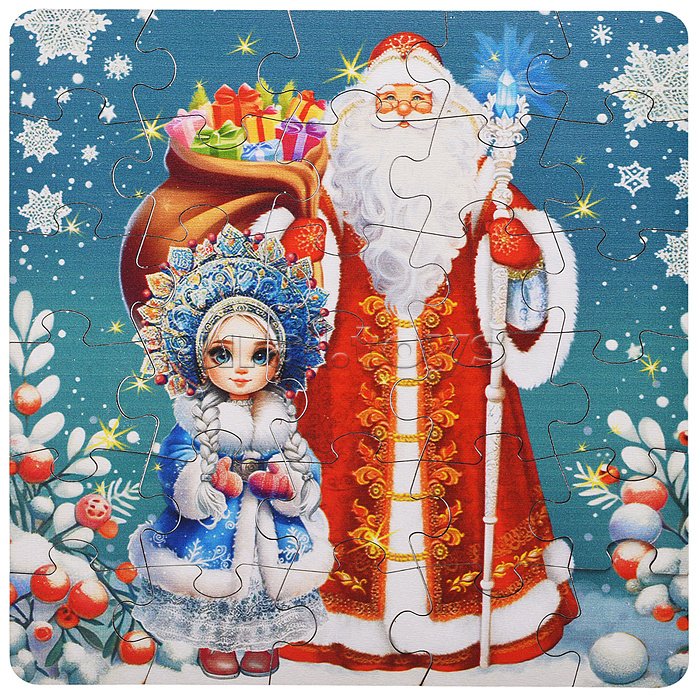 Пазл в пакете "Дед Мороз и Снегурочка" (материал древесный)