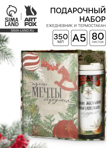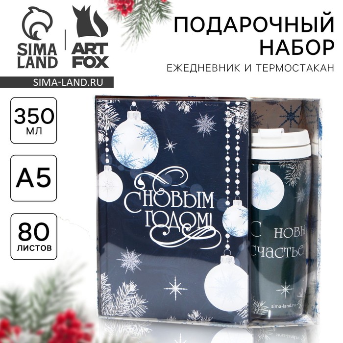 Подарочный набор новогодний, ежедневник А5, 80 листов, термостакан 350 мл «С Новым годом!»