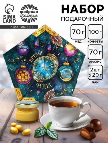 Составляющие набора: Чай, Конфеты, Крем-мёд, Арахис