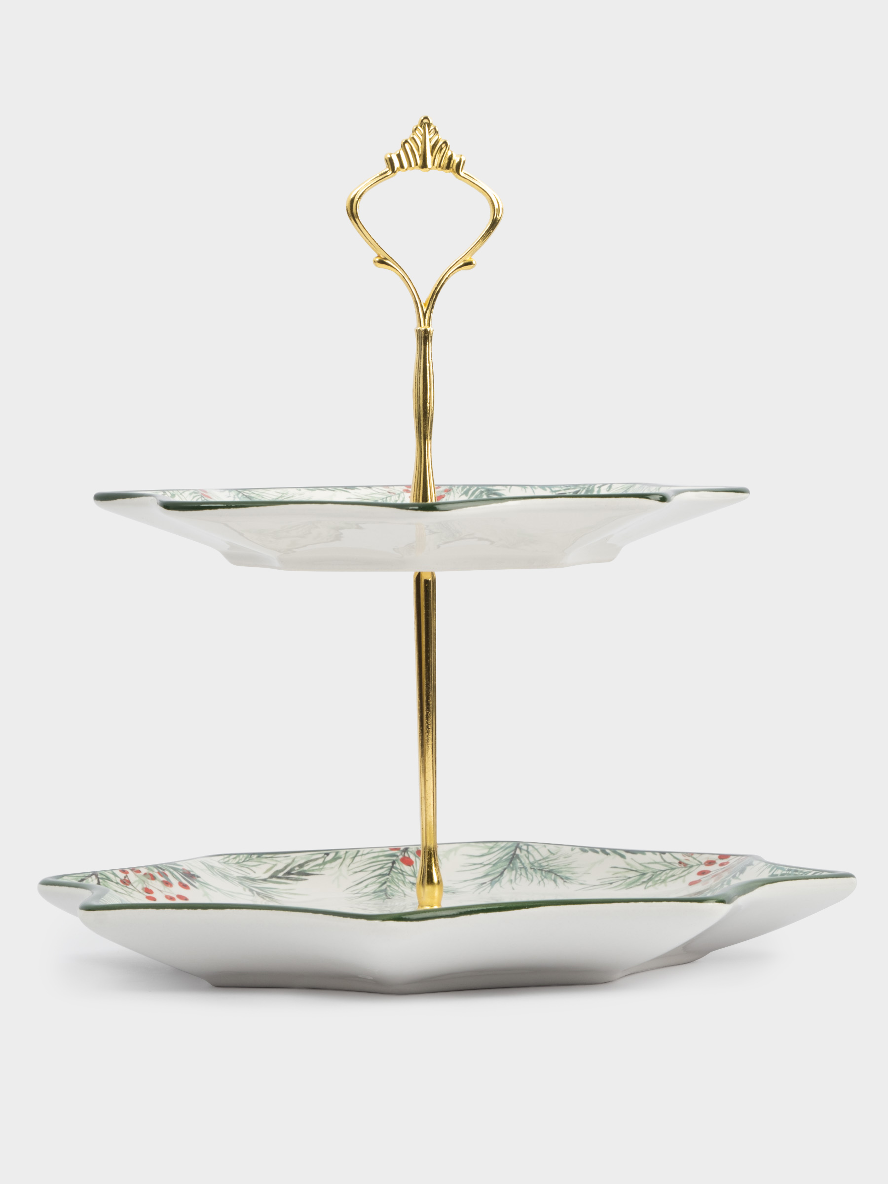Подставка для пирожных, 25х20/24 см, 2 яруса, керамика/металл, Еловые ветки, Festival