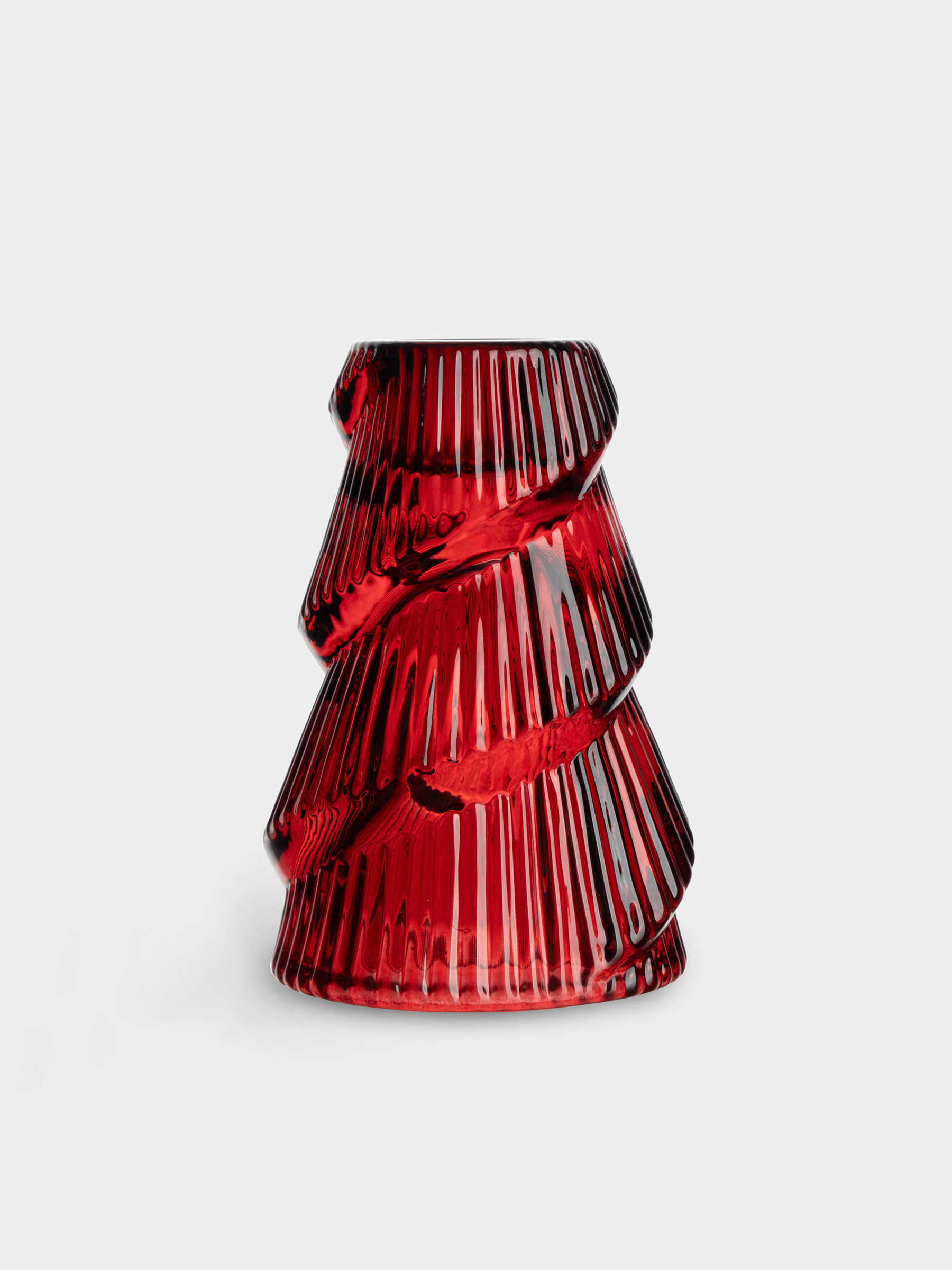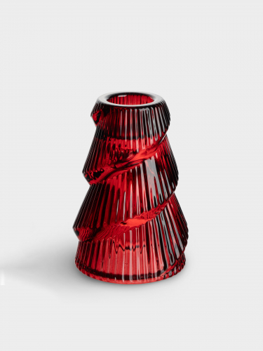 Подсвечник, 9 см, для тонкой свечи, стекло, красный, Елка, Lyric