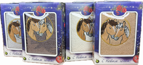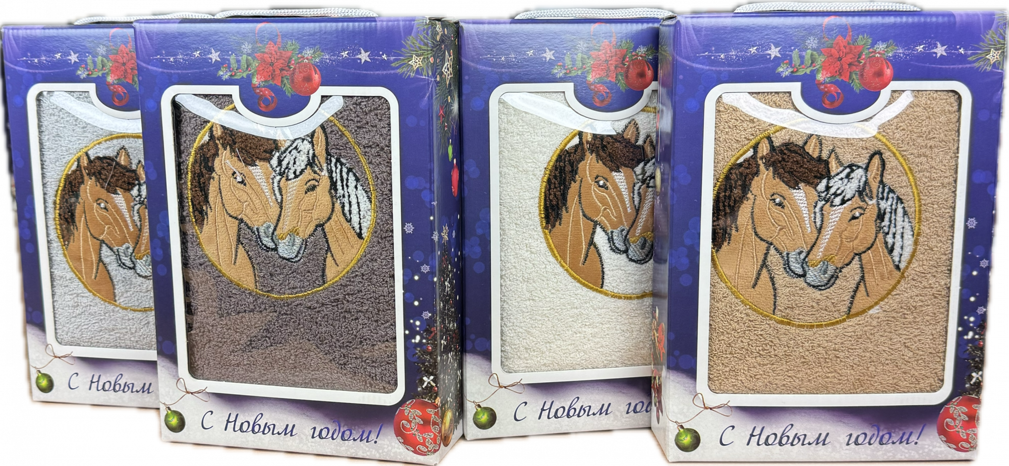 Полотенце махровое в подарочной коробке ПАРА ЛОШАДЕЙ 1 пр р-р 50х90