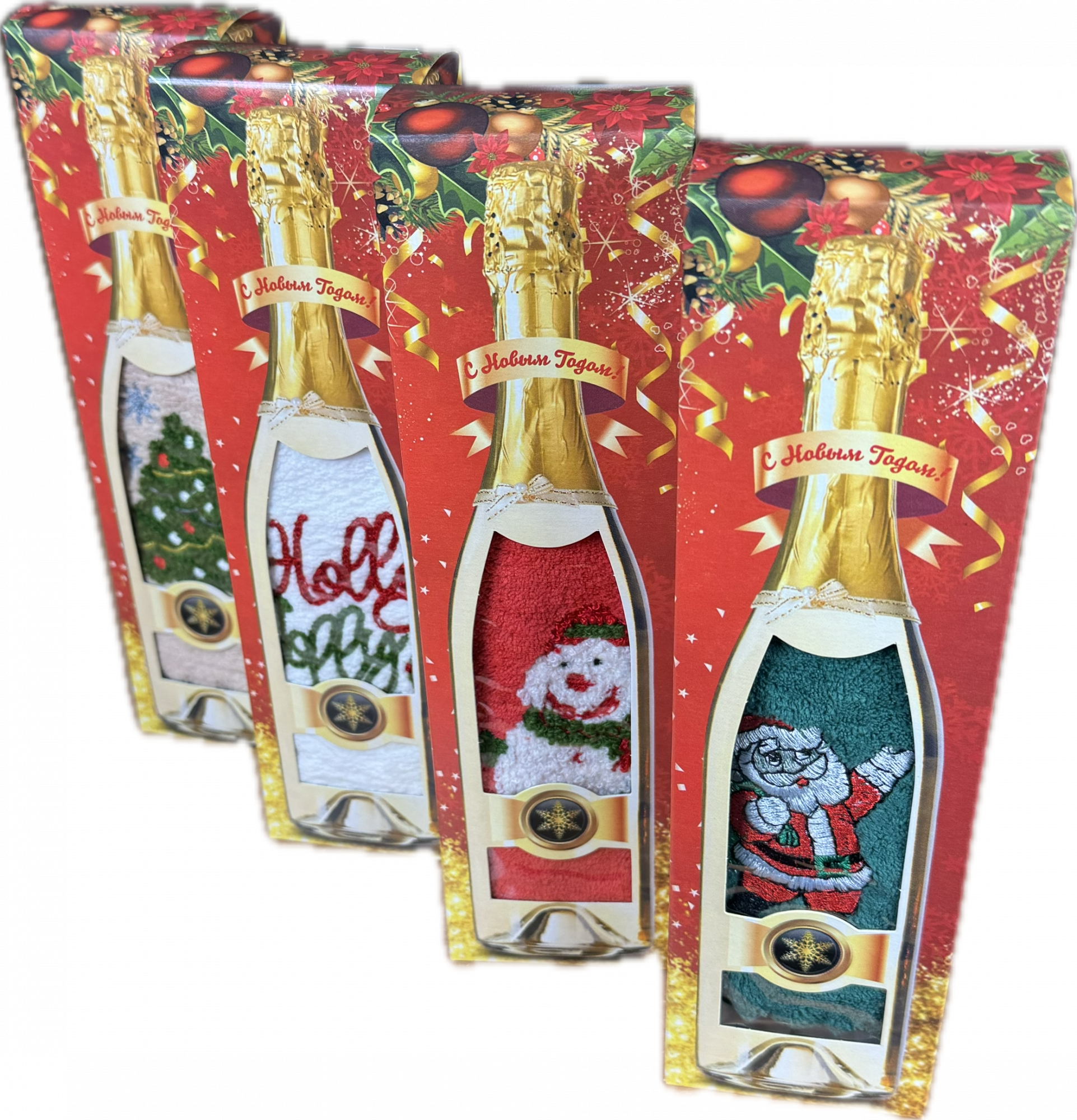 Полотенце микрофибра в подарочной коробке 98 - 888 НОВЫЙ ГОД БУТЫЛОЧКА 1 пр р-р 25х50