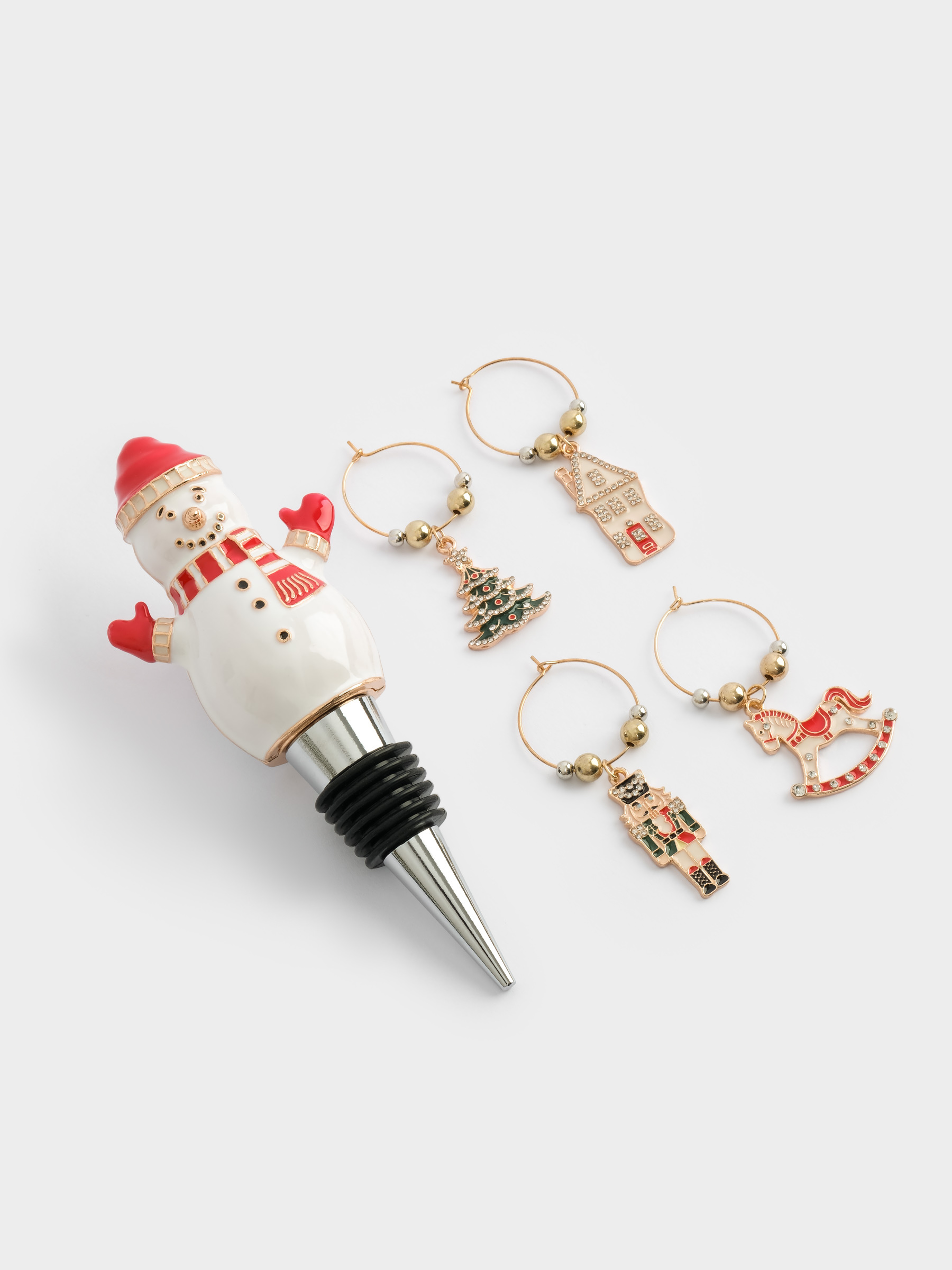 Пробка для винной бутылки с подвесками, 5 пр, металл/стразы, Снеговик, New year