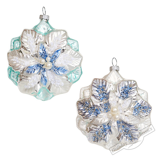 Пуансеттия голубая/перламутровая, асс. из 2-х (стекло) 10х5х12 см