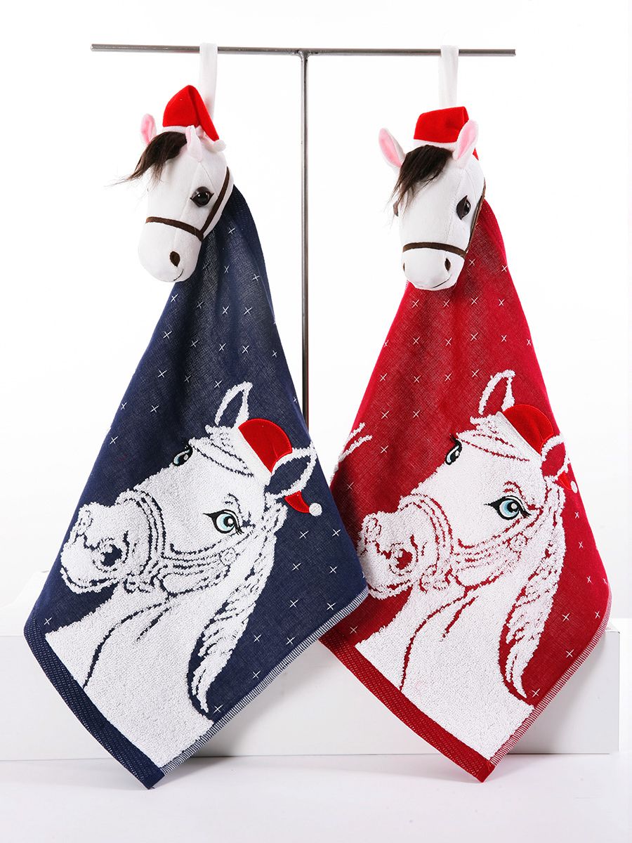 Салфетка с головой лен / махра ЛОШАДКА вид 18 р-р 35х34 ± 1,5 см