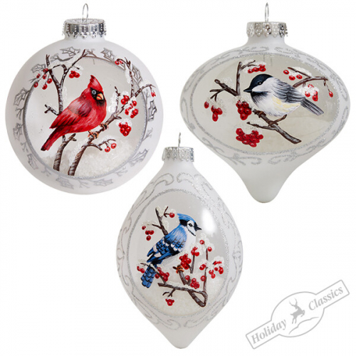 Шар/Капля "Птицы на снегу" прозрачно-белые асс. из 3-х (стекло) 10/10х14,5 см