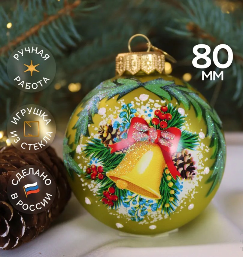 Шар "Колокольчик на веточке", 80 мм., в подарочной упаковке