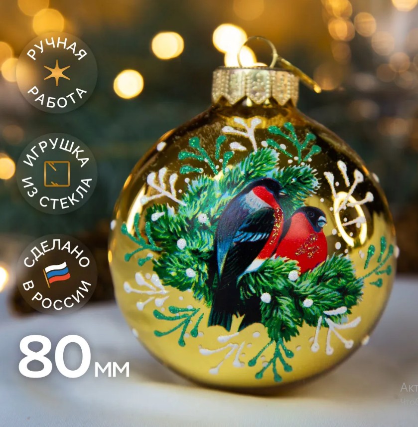 Шар "Красногрудые снегири", 80 мм., в подарочной упаковке