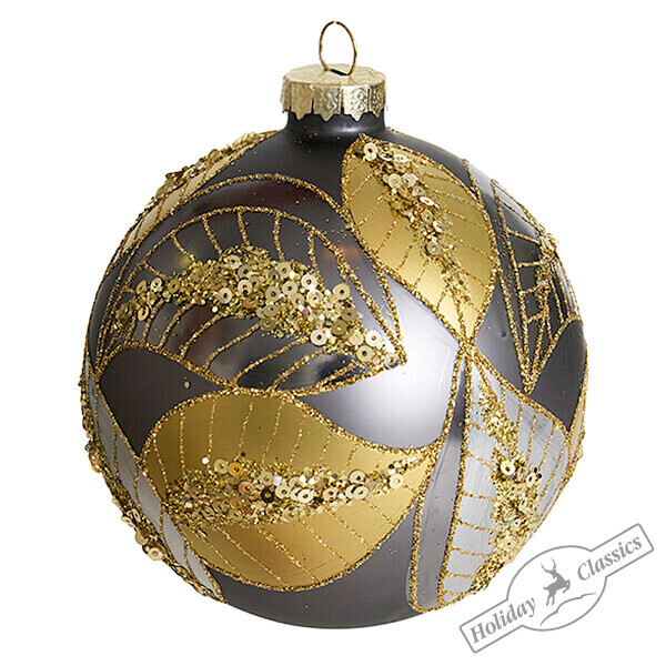 Шар "Лиственный узор" графит матовый (стекло) 10 см