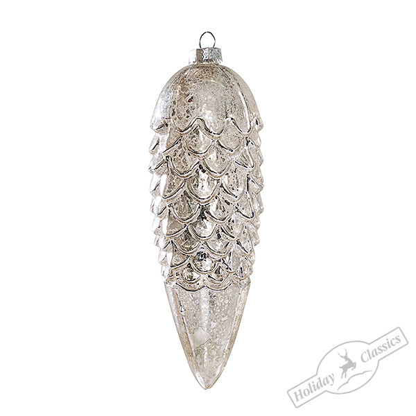 Шишка секвойи серебряная винтаж (стекло) 6х6х18 см