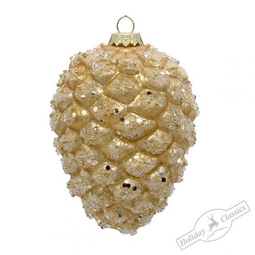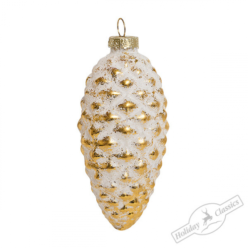 Шишка золотая заснеженная (стекло) 5х5х10,5 см