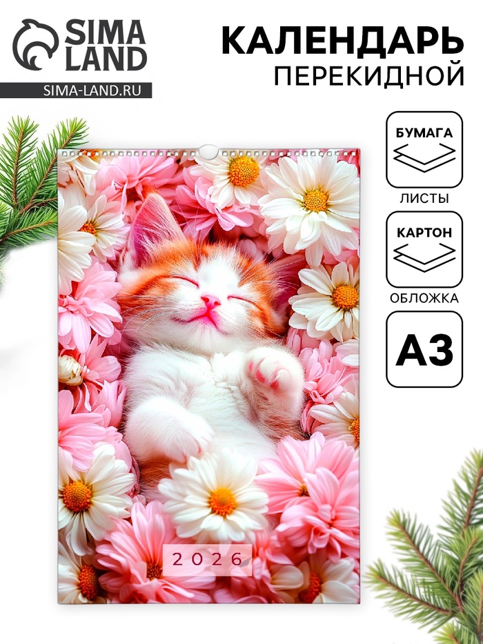 Календарь 2026 перекидной на ригеле А3 «Котики»