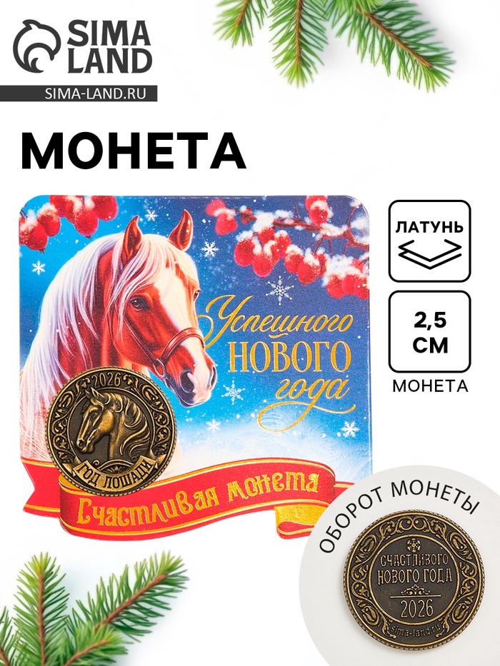 Монета сувенирная «Успешного нового года», латунь, диам 2.5 см