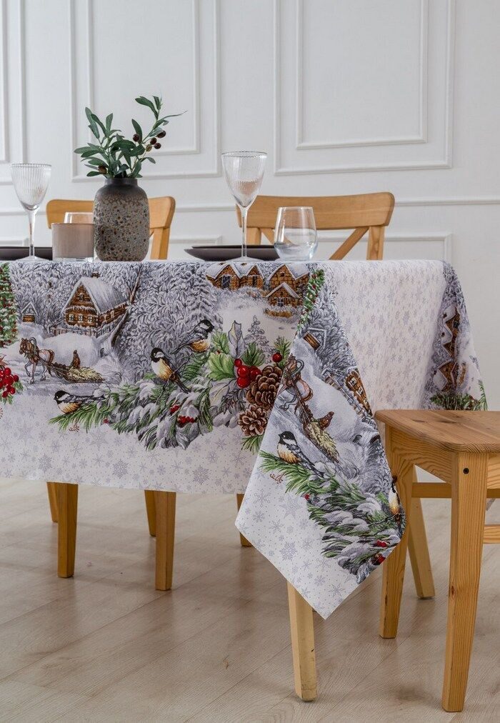 Скатерть "Студеная пора" 150*220см. рогожка хлопок 100%