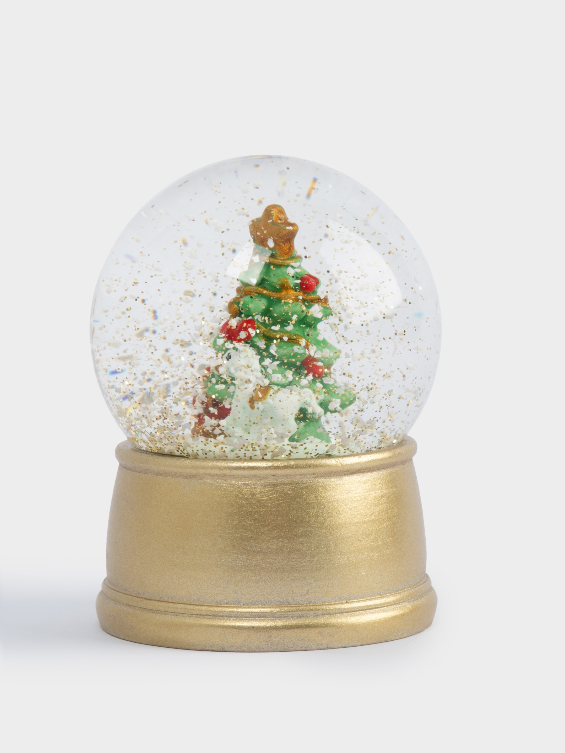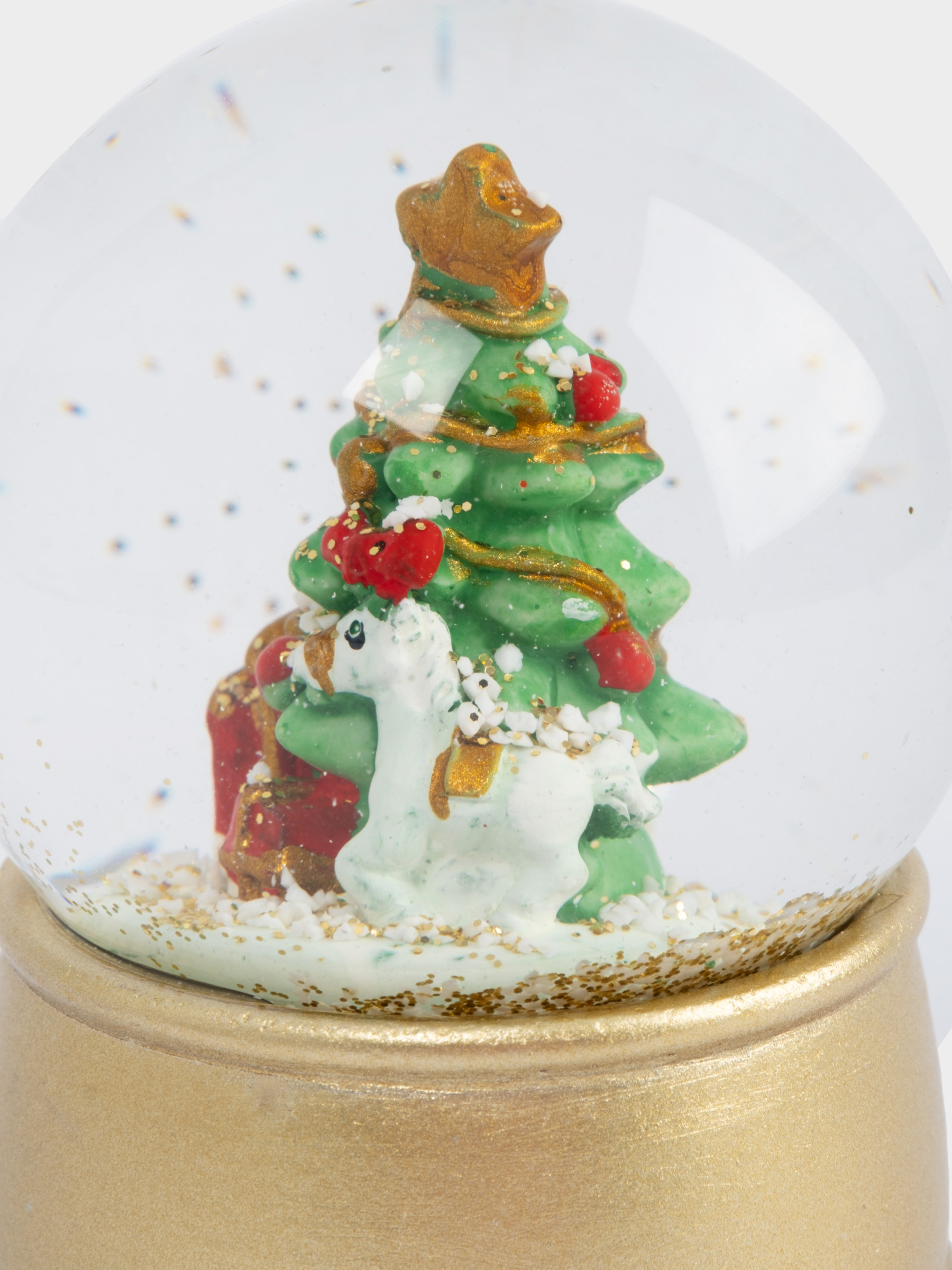 Снежный шар, 7 см, с подсветкой, стекло/полирезин, золотистый, Ель с подарками, New year