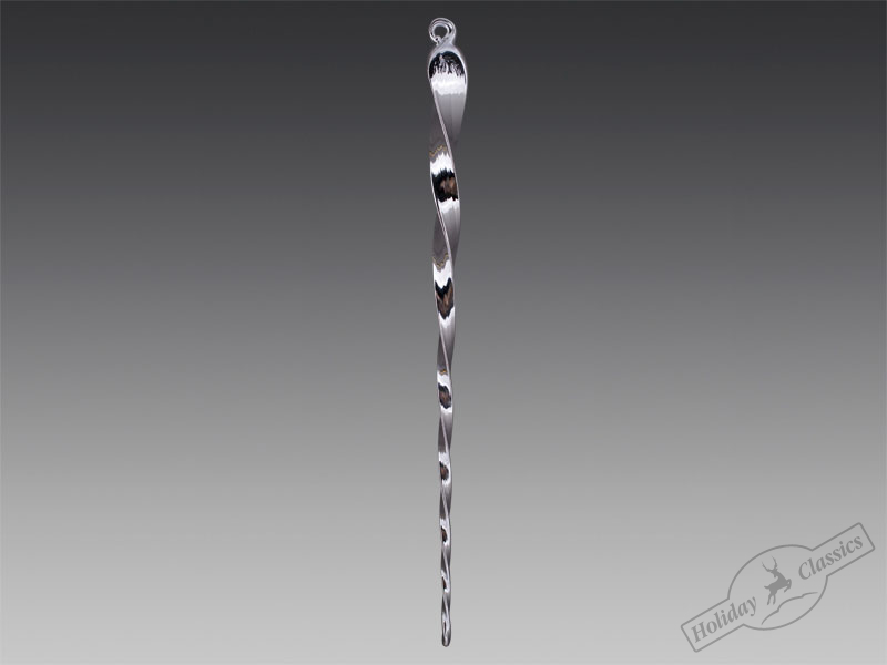 Сосулька витая серебряная глянцевая (стекло), 25 см