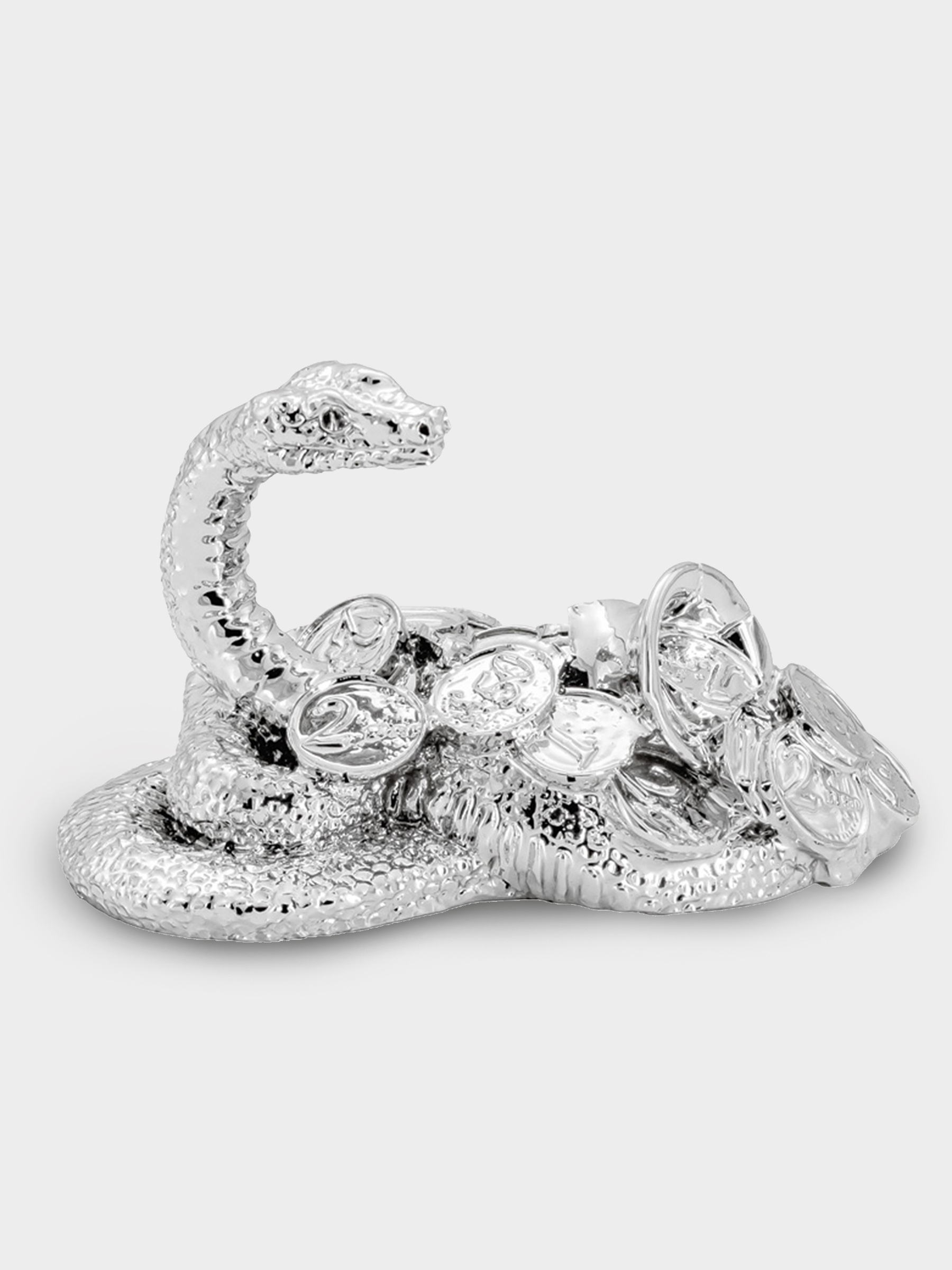 Статуэтка, 6 см, серебристая, Змея с монетами
