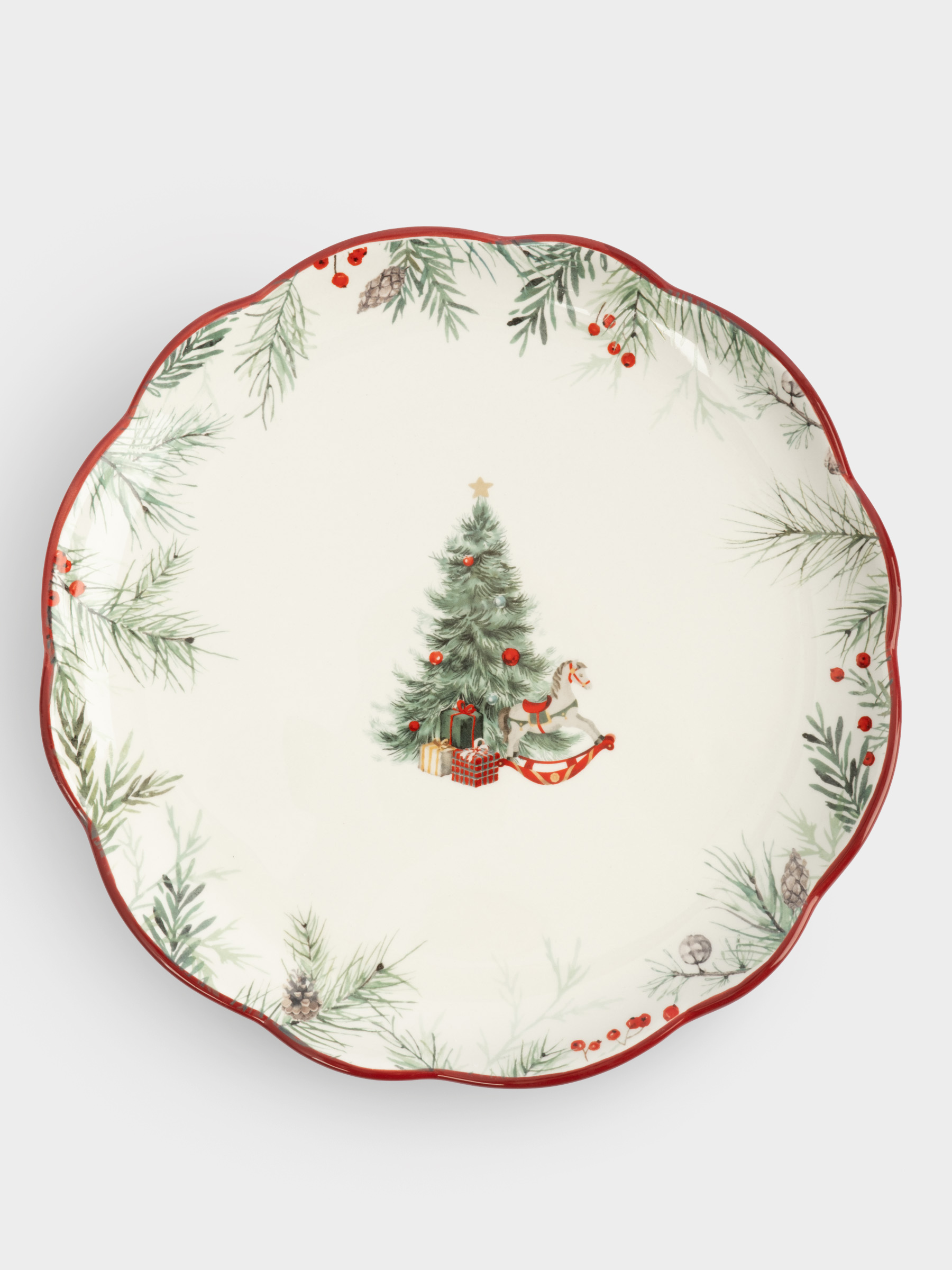 Тарелка обеденная, 24 см, керамика D, красная, Лошадка у елки, Festival