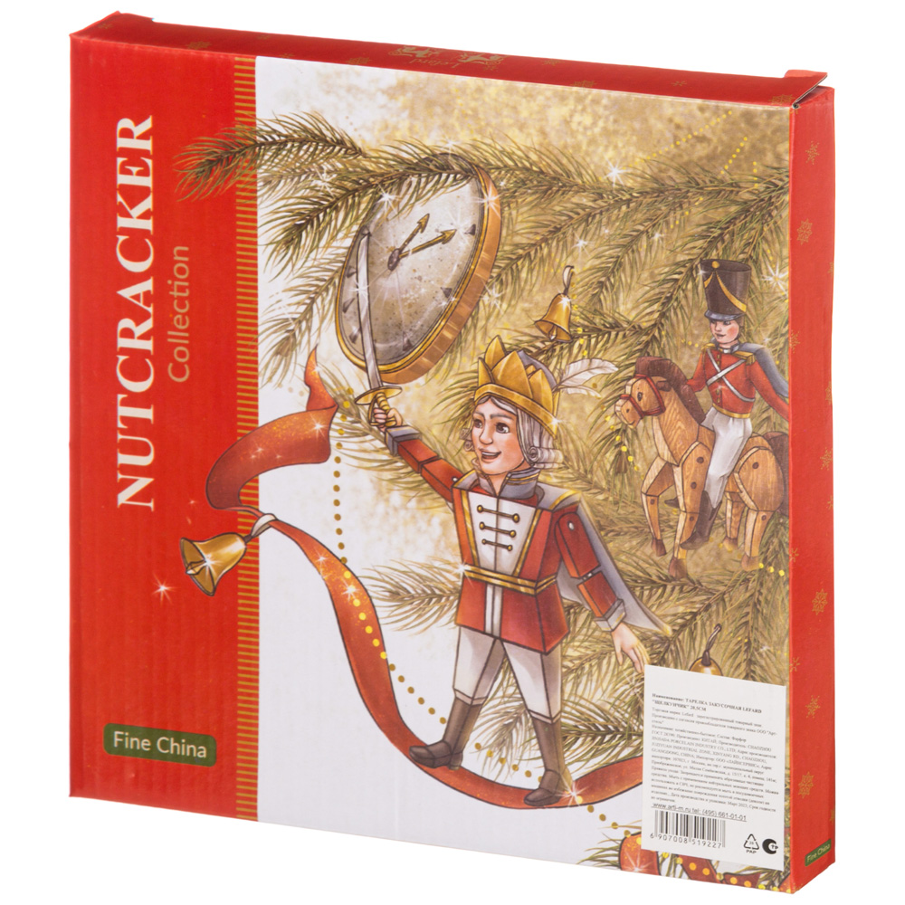 ТМ LEFARD эксклюзивная коллекция «Nutcracker» - Щелкунчик создана по мотивам одноименной истории, с которой знакомы все дети и взрослые. Волшебная история о новогоднем чуде идеально подходит для создания праздничного настроения. Широкий ассортимент тарелок, салатников, кружек, чайных пар поможет сервировать праздничный стол и создать сказочную атмосферу. Все изделия выполнены из качественного тонкого фарфора. Прямые современные формы, удобные объемы. Стильная, подарочная упаковка. Дарите сказку друзьям и близким людям! Можно использовать в СВЧ, не рекомендуется мыть в посудомоечных машинах во избежание повреждения золотой отводки (деколи) на изделиях.