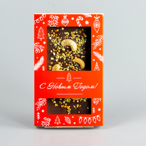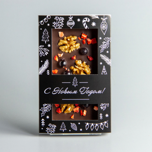 Тёмный шоколад с клубникой, черной смородиной и грецким орехом, новогодняя коробочка #4
