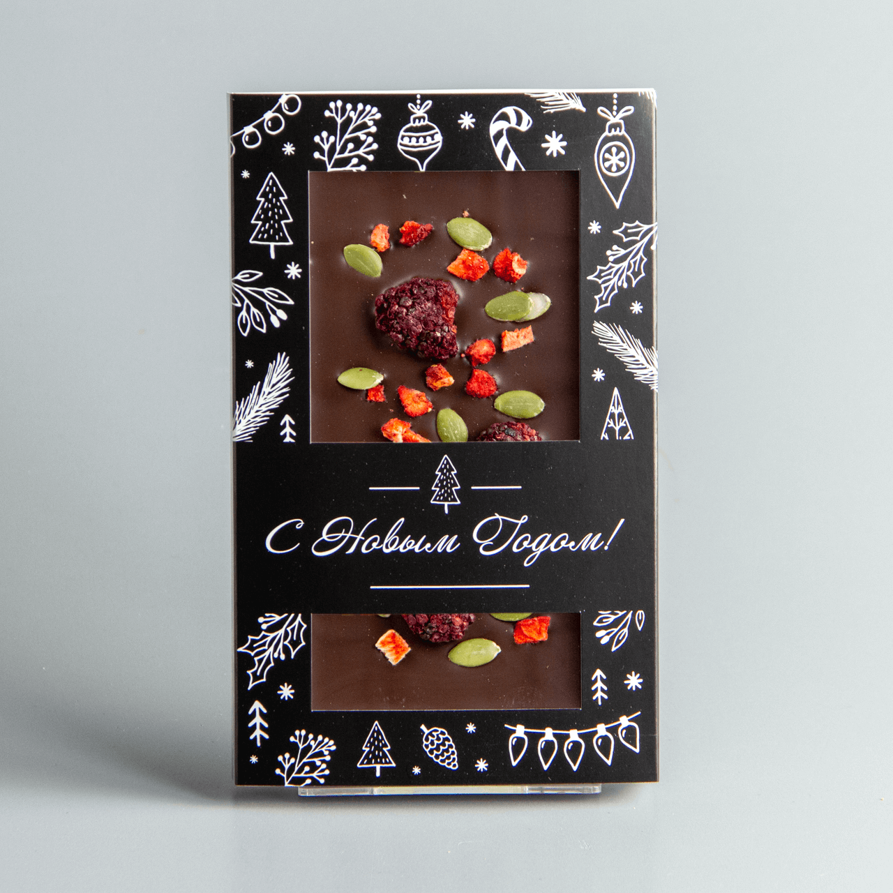 NEW! Тёмный шоколад с клубникой, ежевикой и семечками тыквы, новогодняя коробочка #27
