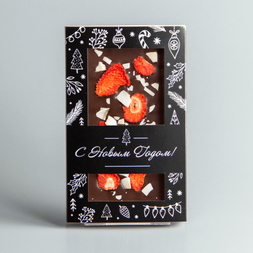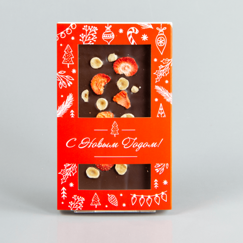NEW! Тёмный шоколад с клубникой и жаренным фундуком, красная коробочка #24