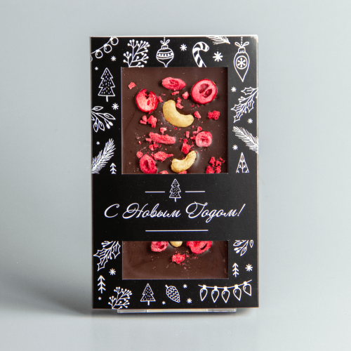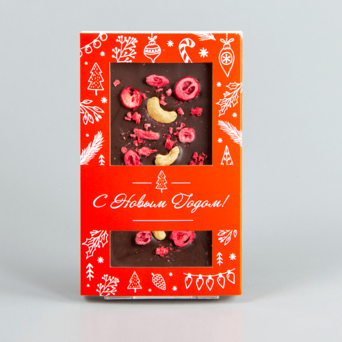 NEW! Тёмный шоколад с клюквой, малиной и жаренным кешью, новогодняя коробочка #26