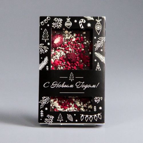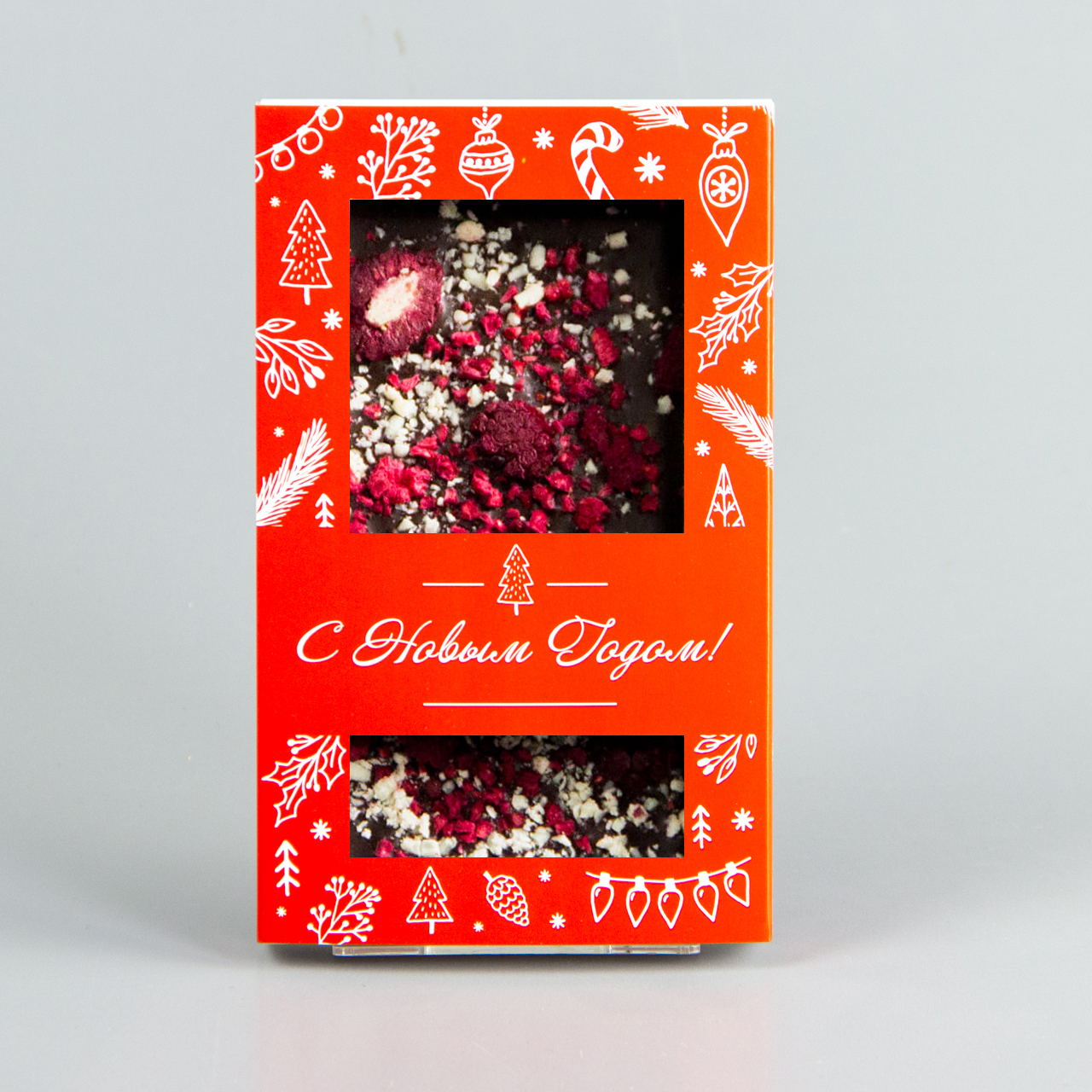 Тёмный шоколад с малиной, ежевикой и стружкой белого шоколада, красная коробочка #12