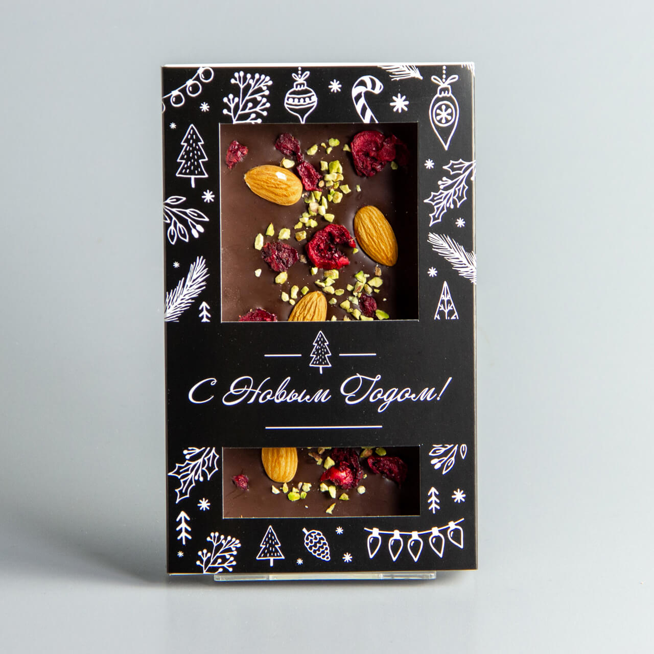 Тёмный шоколад с вишней, фисташками и миндалём, новогодняя коробочка #14