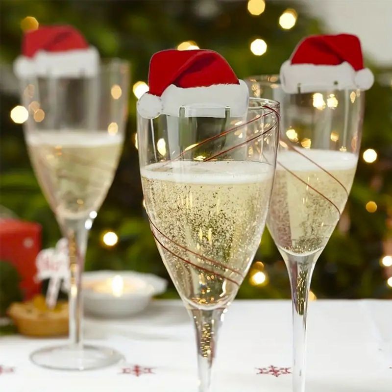 Украшение бокалов "Шапочки Санты", 10 штук. Ламинированный картон 9046675