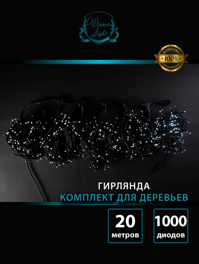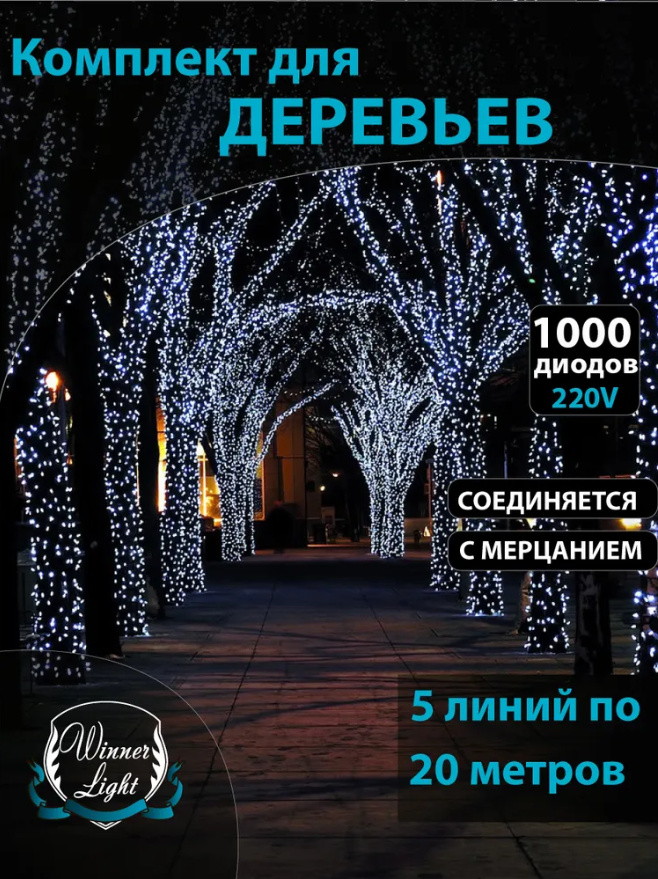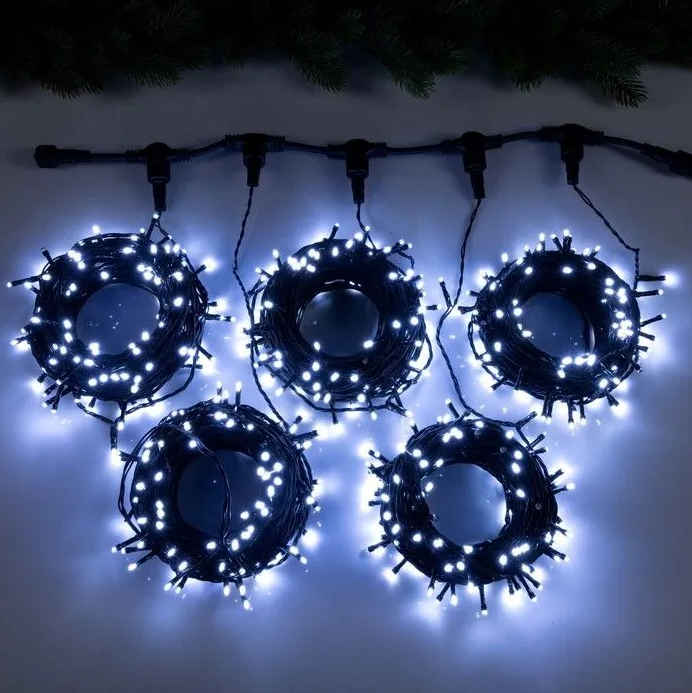 Уличный клип-Лайт для деревьев, 5 линий по 20 метров, холодный белый, 220В, черный ПВХ провод, уличный коннектор