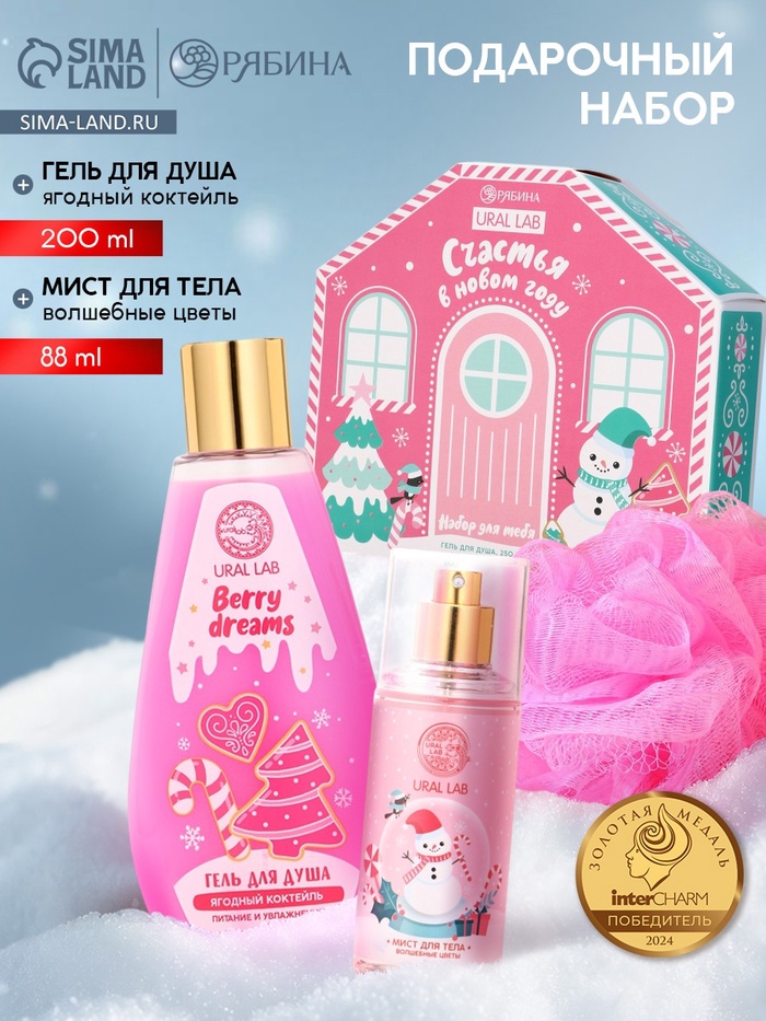 Подарочный набор новогодний «Счастья в Новом году», гель для душа, мочалка и мист, URAL LAB