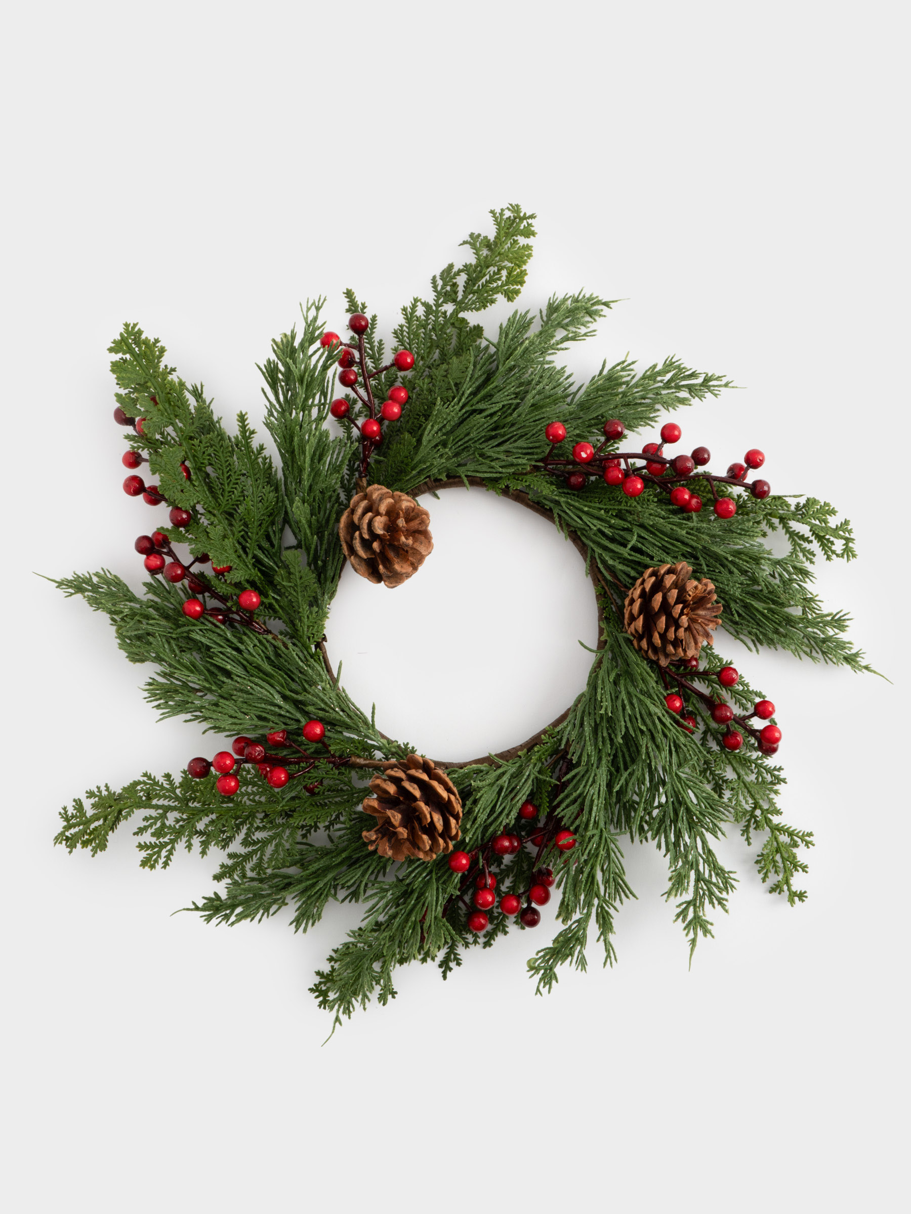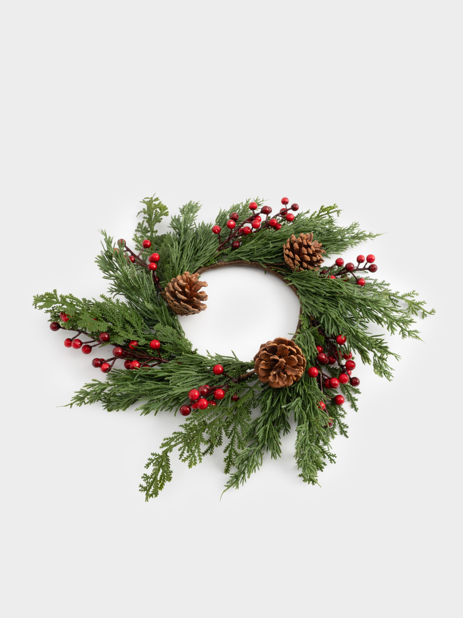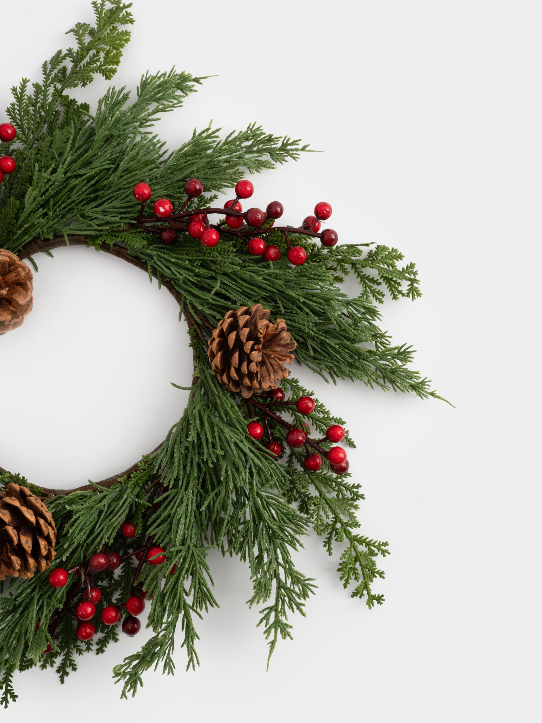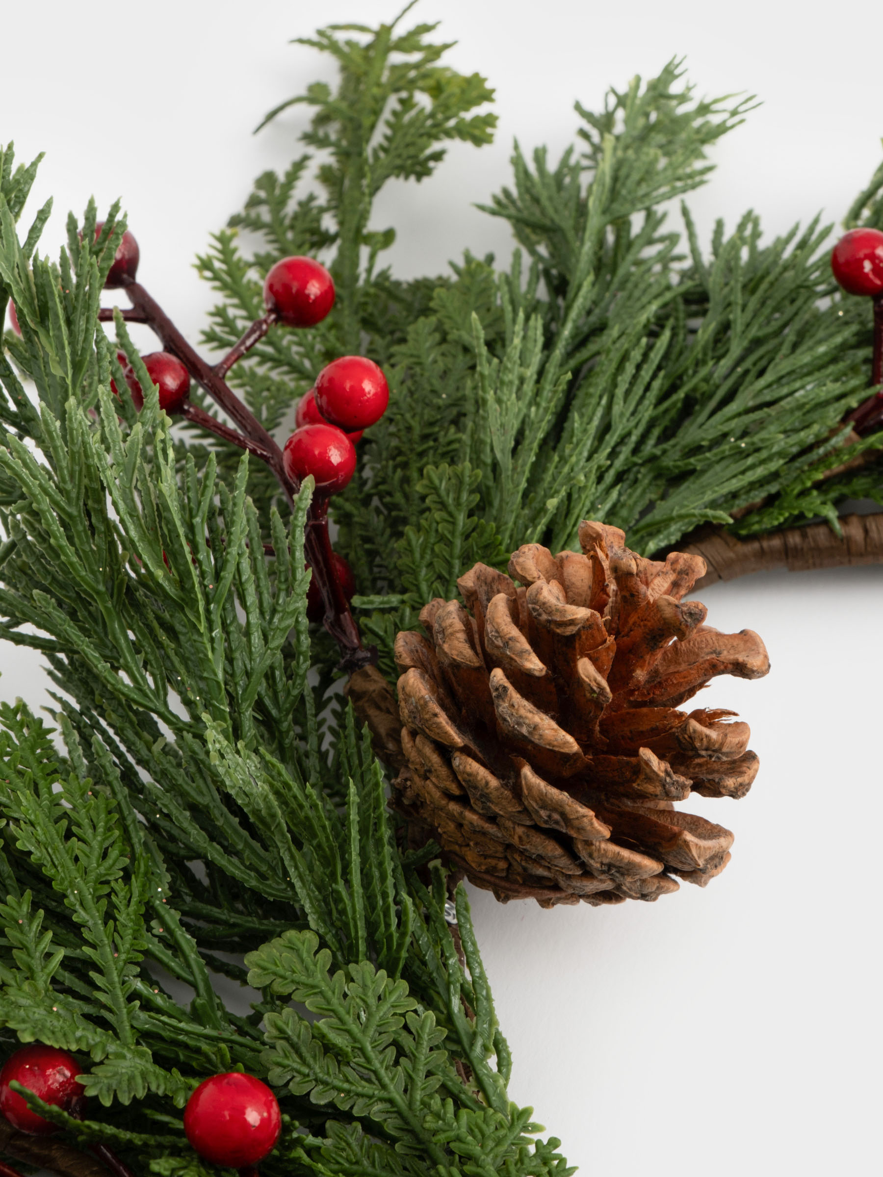 Венок декоративный, 15/38 см, пластик/пенопласт, Шишки и красные ягоды, Interior natural