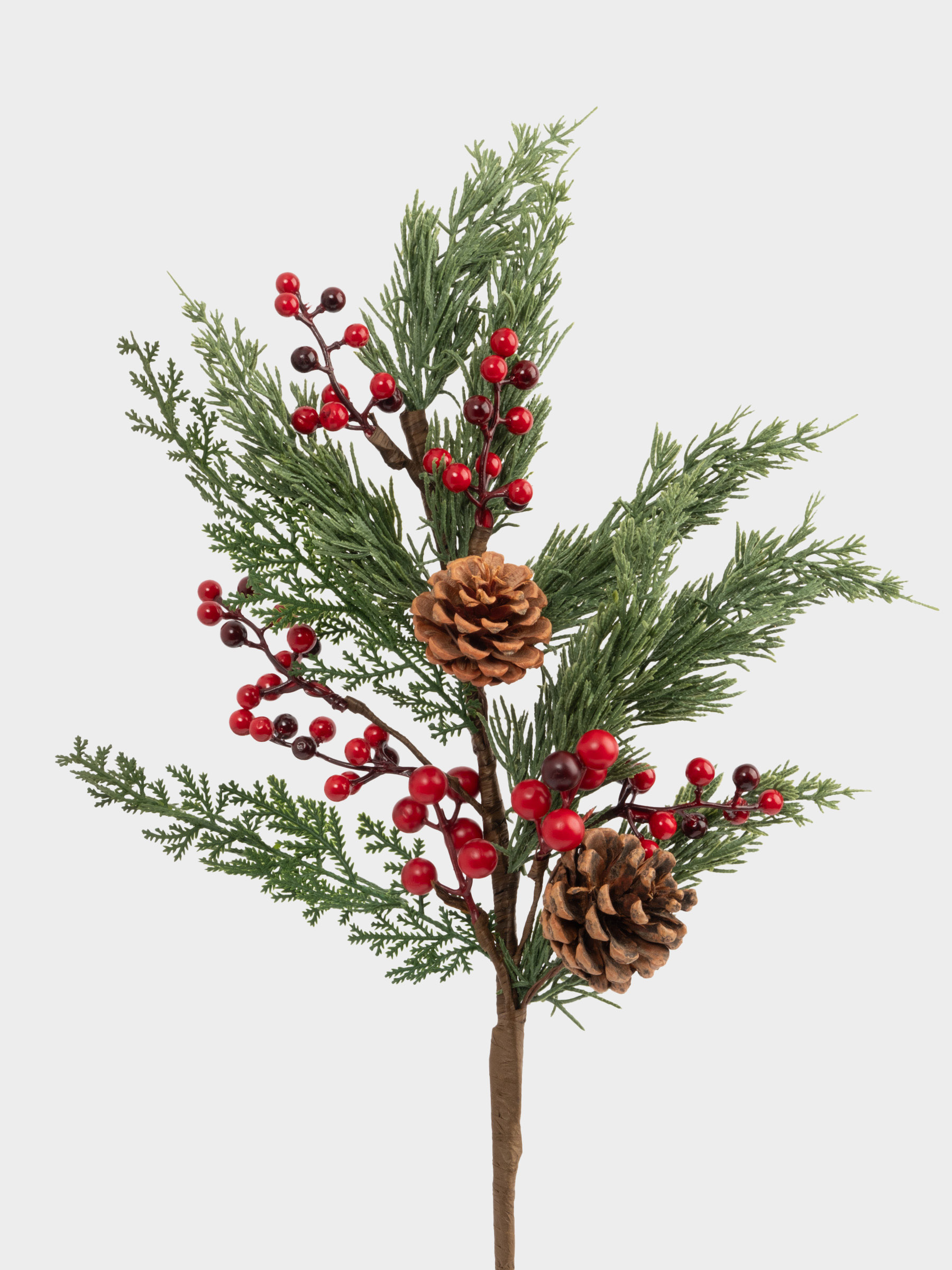 Ветка декоративная, 73 см, пластик/пенопласт, Шишки и красные ягоды, Interior natural