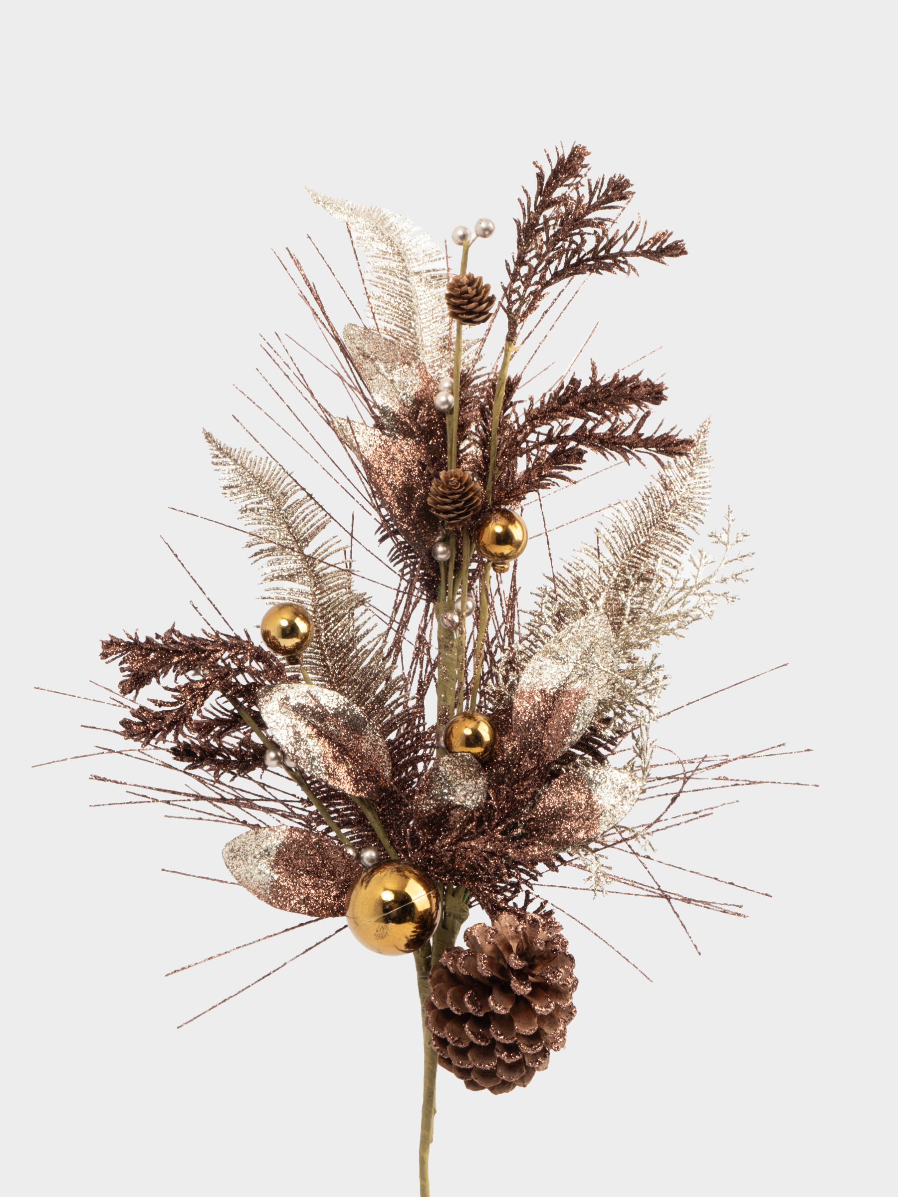 Ветка декоративная. Размер: 75 см. Материал: пенопласт, полиэстер, шишки, бумага, металл. Предназначена для декорирования интерьера. Рекомендуется сухая чистка. 763