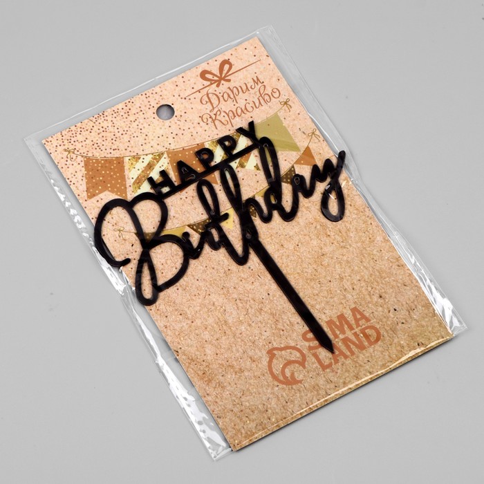 Топпер для торта «День рождения», черный глянец