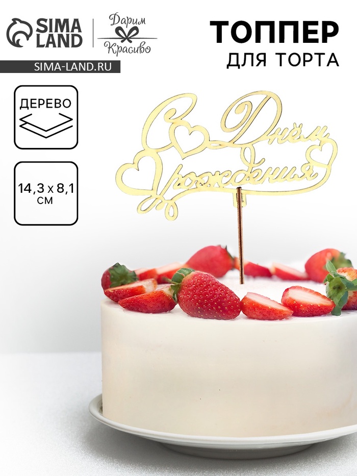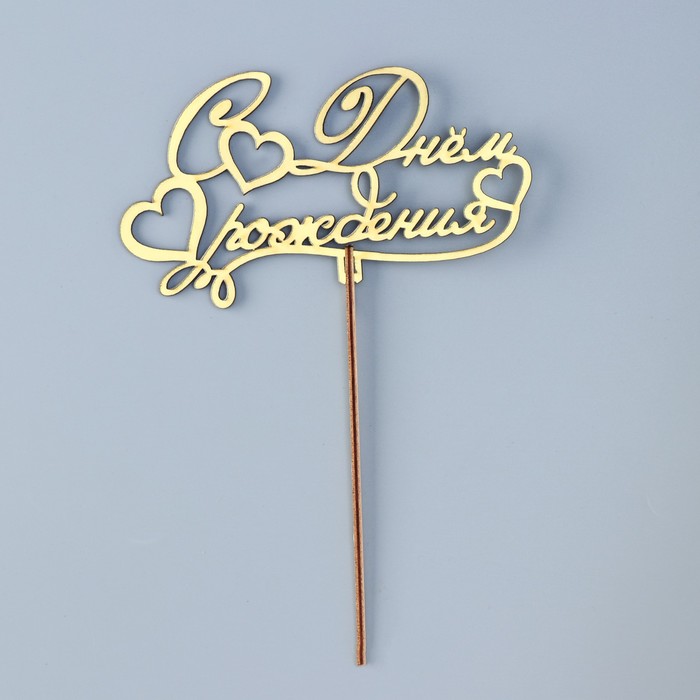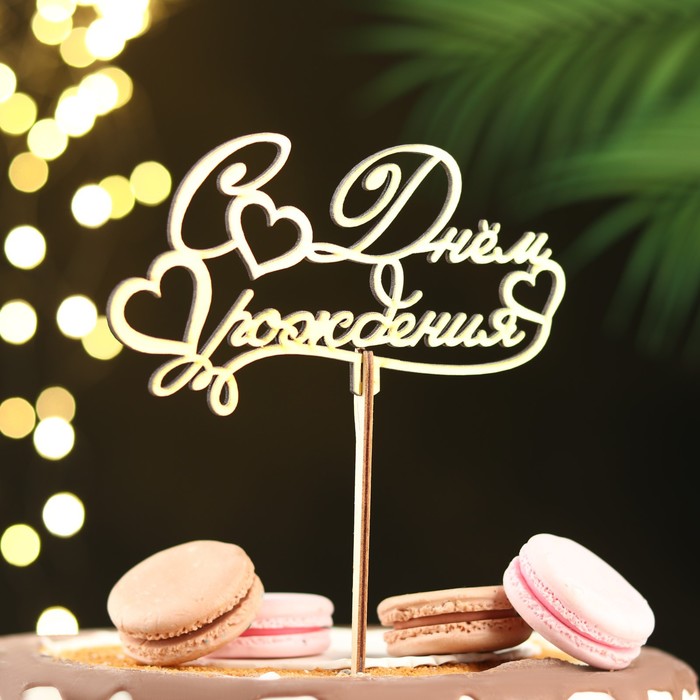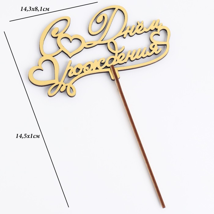 Топпер для торта деревянный «С Днём Рождения», 14.3×8.1 см