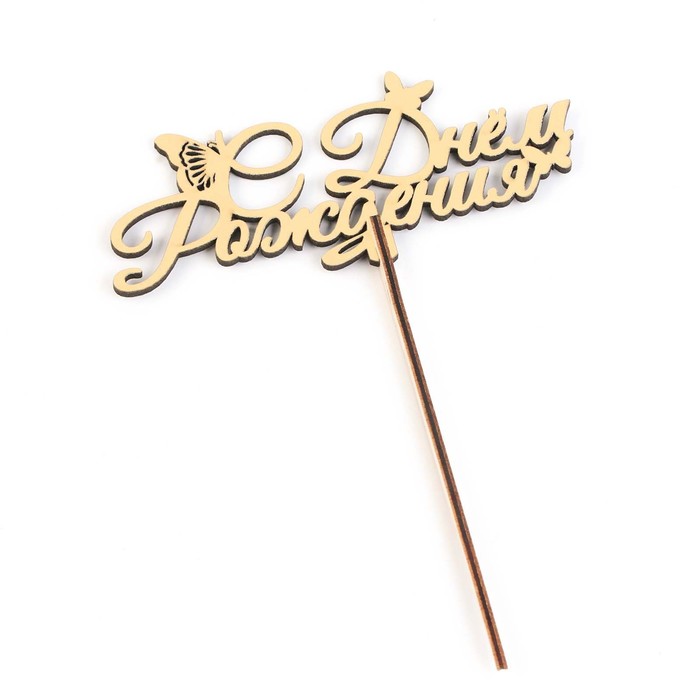 Топпер для торта деревянный «С Днём Рождения», золотой, 14.3×6.4 см