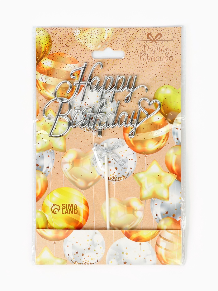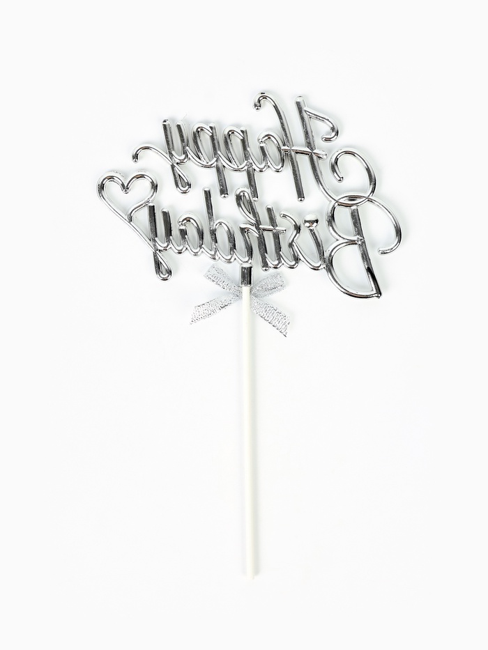 Топпер для торта Happy Birthday, серебряный