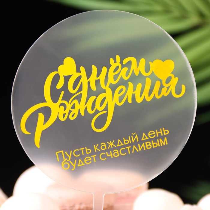 Топпер для торта «С днём рождения», прозрачный с желтым