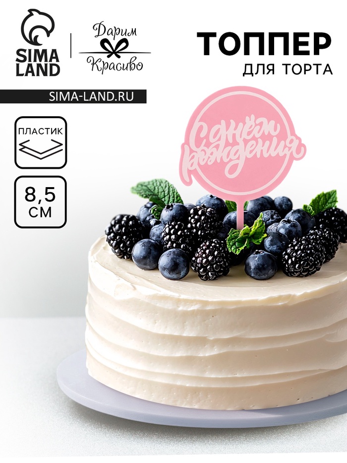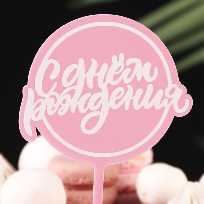 Топпер для торта «С днём рождения», розовый