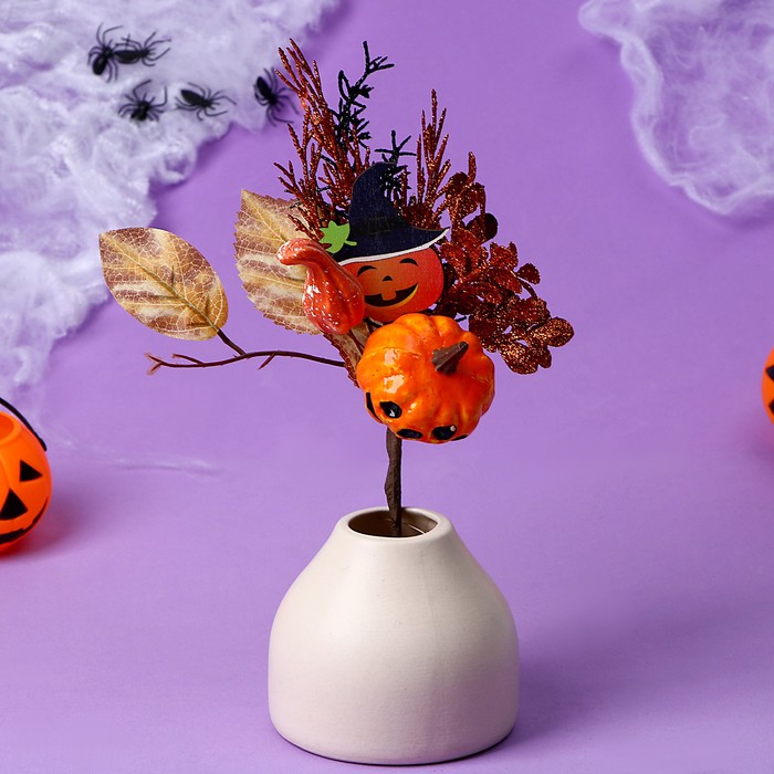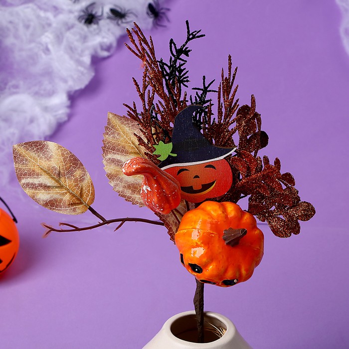 Декор на палочке «Хэллоуинская тыква». Создайте волшебную атмосферу Хэллоуина с помощью декора на палочке в виде тыквы. Это стильное украшение идеально подходит для тематического оформления интерьера, добавляя праздничного настроения и уюта. Легкий и компактный декор легко устанавливается и не требует дополнительных усилий.