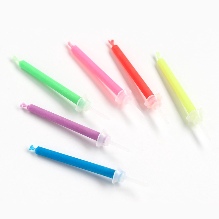Набор свечей с цветным пламенем — волшебное зрелище на любой праздник! В комплекте 6 свечей, которые при горении создают яркое, необычное пламя: синее, зелёное, фиолетовое, красное и другие оттенки — как настоящая магия на вашем торте! Свечи безопасны в использовании, легко заходят в торт и горят ровно 7 минут. Идеально подходит для дня рождения, вечеринки или тематического праздника. Подарите себе и гостям незабываемые эмоции — ведь обычный огонь хорош, разноцветный — по-настоящему волшебен!